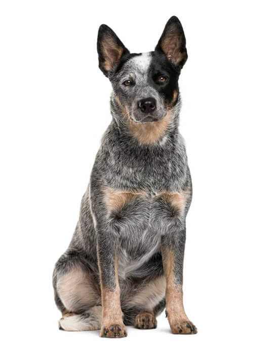 O blue heeler pode ter mancha maior preta, azul ou marcação tan (padrão com marcas castanhas).
