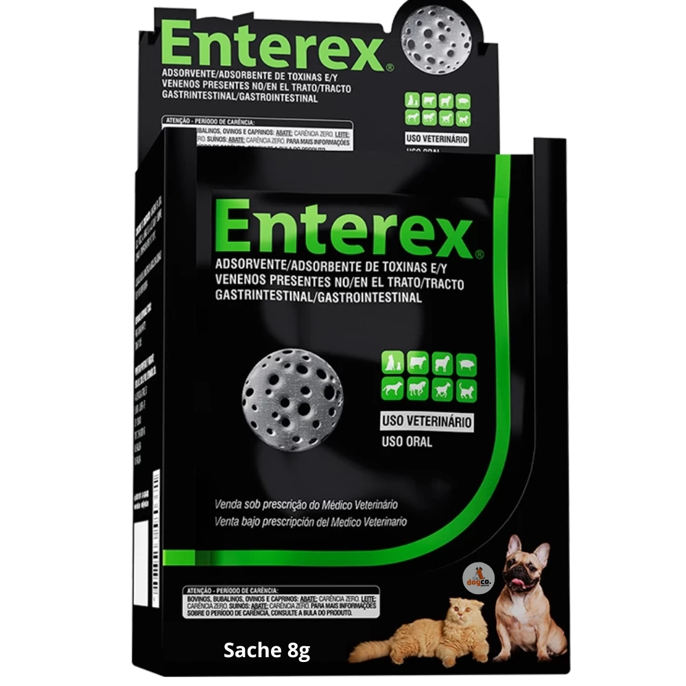 Enterex® está indicado como adsorvente de toxinas e venenos presentes no trato gastrintestinal de equídeos, bovinos, bubalinos, caprinos, ovinos, suínos, nos casos de envenenamentos, intoxicações diversas, além de auxiliar em diarreias e gastroenterites.
