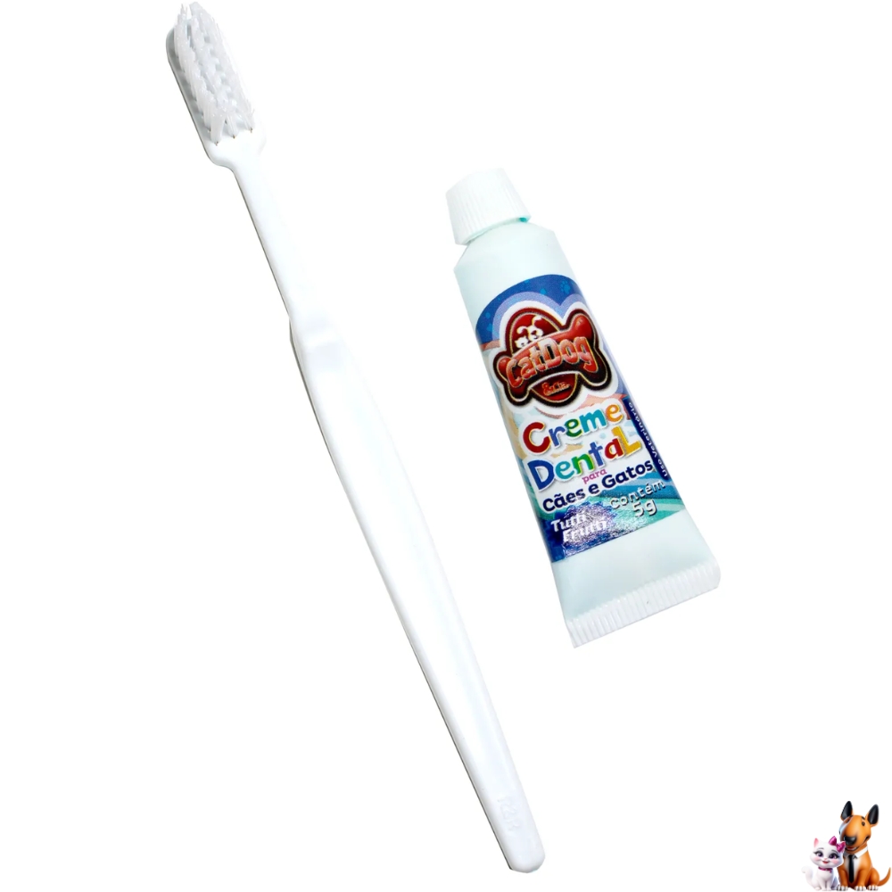 O kit de escova e creme dental para pet foi desenvolvido especialmente para uso em cães e gatos.